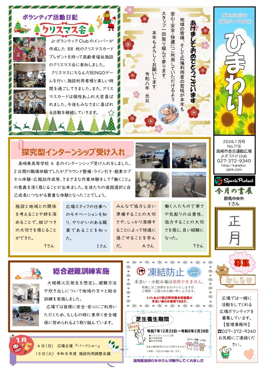 - 金古運動広場では、Jr.ボランティアClubが中心となり金古運動広場だより「ひまわり」を発行しています。過去のたよりをこちらからご覧いただけます。下のリンクをクリックしてください。